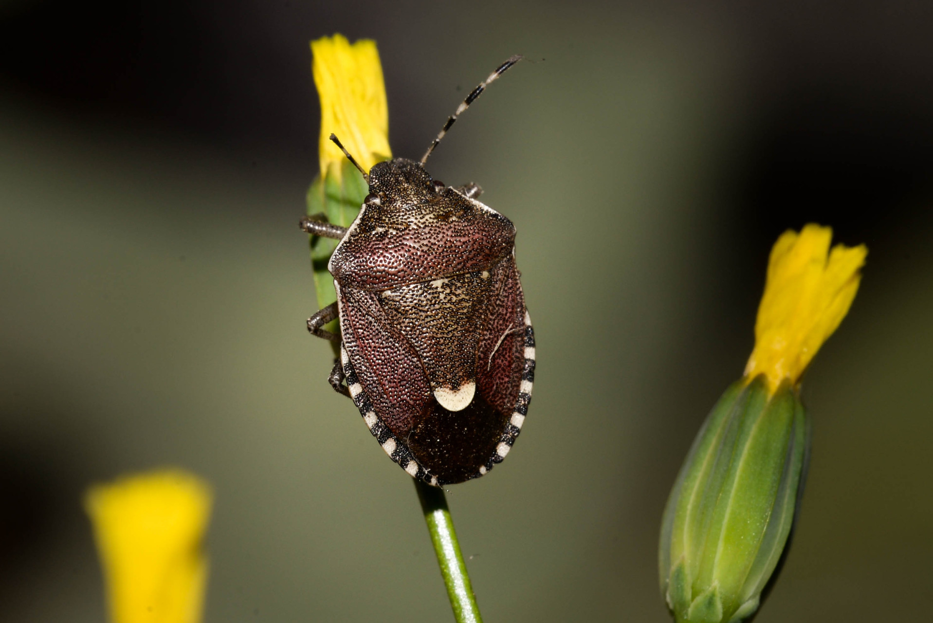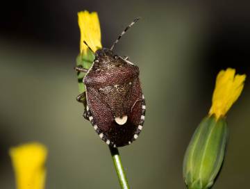 Taille : 8 – 10 mm Diagnose : Petite punaise de coloration globale violacée homogène. Son clypéus (nez) est non enclos par les jugas (joues). Les articles antennaires III sont aussi longs que les II, et les III, IV, V sont jaunes avec chacun un anneau noir. L’extrémité du scutellum est blanche et contrastée par rapport au reste du corps avec son bord antérieur marqué de petits points blancs (ou calus). Bords antéro‐latéraux du pronotum finement rebordés, avec un ourlet mince portant une carène médiane lamellaire (vue de face). Détermination : Délicate. Espèces proches : Se distingue d’H. albipes qui a les bords antéro-latéraux du pronotum larges et calleux, sans rebord caréné. Proche d'Holcostethus evae : l’examen des pièces génitales mâles (pygophore) est nécessaire pour une identification sûre en région méditerranéenne : il est nettement échancré en forme de V chez H. evae, et beaucoup moins chez H. sphacelatus. Période d’observation : Avril à octobre, avec un pic en juin-juillet. Biologie-éthologie : C’est une espèce polyphage, qui s’alimente le plus souvent sur molènes (Scrophulariacées), résédas (Résédacées), centranthes (Caprifoliacées), achillées (Asteracées) ou airelles (Ericacées). Biogéographie et écologie : Espèce répandue dans toute l’Europe, sauf en Grande-Bretagne et dans les péninsules Danoise et Scandinave, jusqu’à 55° de latitude nord. Absente des secteurs méditerranéens les plus chauds, elle atteint 1 850 m d’altitude. On la trouve en milieux ouverts et ensoleillés : friches, lisières forestières, landes, pelouses et prairies, affleurements rocheux. Commune dans toute son aire, mais sa densité est rarement élevée. On peut la trouver en présence d’H. albipes en zone méditerranéenne, et d’H. evae dans l’est des Pyrénées.