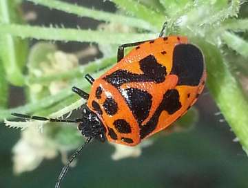 Taille : 5 – 7,5 mm Diagnose : Petite punaise de coloration générale noire à reflets métalliques, bariolée de taches claires rouges ou orange. Corie (partie sclérifiée de l’aile antérieure) dont la partie centrale (mésocorie) porte au moins 2 grandes taches claires, et dont la partie externe latérale (exocorie) est entièrement claire sans tache noire. Scutellum avec une tache claire principale en forme de Y. Détermination : Simple. Espèces proches : Au sein du genre Eurydema, cette espèce se reconnaît à l’absence de tache noire sur l’exocorie, à ses hémélytres luisants et à sa petite taille. Période d’observation : Avril à septembre. Biologie-éthologie : Elle se nourrit sur plusieurs crucifères dont principalement les arabettes, les cardamines et les rorripes. Biogéographie et écologie : Espèce paléarctique présente dans le sud de la Grande-Bretagne et de la Scandinavie jusqu'à 60° de latitude nord. Elle atteint l'Inde, la Corée et le Japon vers l’est, et la limite septentrionale du domaine méditerranéen vers le sud. Elle est répandue dans les plaines du nord et de l’est soumises au climat continental. Elle évite les zones montagneuses et les façades maritimes de la Méditerranée, de l’Atlantique, de la Manche et de la mer du Nord. On la rencontre principalement dans les milieux humides des secteurs continentaux : prairies humides tempérées, marais, tourbières, landes à bruyères, lisières forestières, parcs, et parfois, plus au nord, sur pelouses calcicoles ensoleillées. C’est une espèce relativement rare, dont la densité est toujours faible.