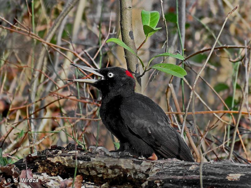 Le Pic noir se nourrit surtout des larves, pupes et adultes de fourmis et de coléoptères xylophages. Son bec est plus grand et plus fort que celui des autres pics européens, mais sa langue se projette plus faiblement (50-55 mm au-delà de la pointe du bec) que celle du Pic vert. Ses larges glandes salivaires produisent une sécrétion visqueuse qui couvre la langue, dont la pointe est garnie de barbillons orientés vers l’arrière. Ils lui permettent d’empaler et d’extraire les larves de coléoptères.